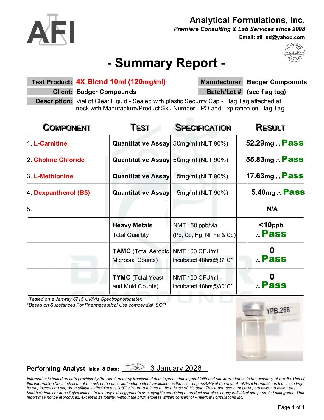 By purchasing from Badger Compounds, the buyer affirms that they are a qualified researcher or institution with the appropriate training, facilities, and authorization to handle, store, use, and dispose of research chemicals in compliance with all applicable federal, state, and local laws and regulations. All sales are final. Badger Compounds assumes no liability for misuse, improper handling, or any consequences arising from the use of this product.
