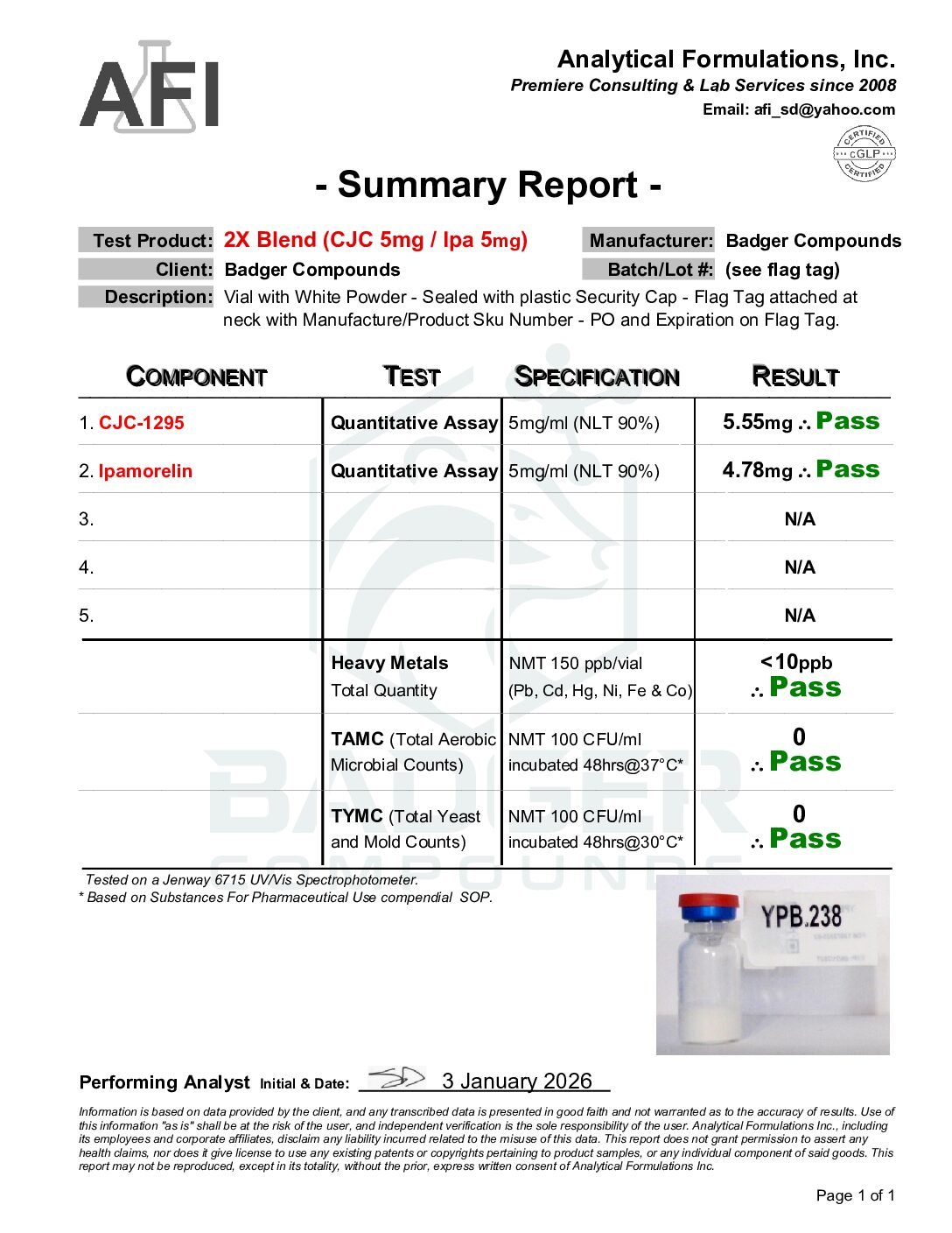 By purchasing from Badger Compounds, the buyer affirms that they are a qualified researcher or institution with the appropriate training, facilities, and authorization to handle, store, use, and dispose of research chemicals in compliance with all applicable federal, state, and local laws and regulations. All sales are final. Badger Compounds assumes no liability for misuse, improper handling, or any consequences arising from the use of this product.