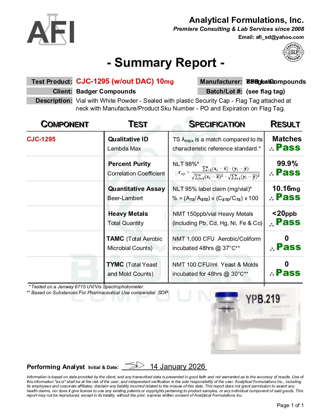 By purchasing from Badger Compounds, the buyer affirms that they are a qualified researcher or institution with the appropriate training, facilities, and authorization to handle, store, use, and dispose of research chemicals in compliance with all applicable federal, state, and local laws and regulations. All sales are final. Badger Compounds assumes no liability for misuse, improper handling, or any consequences arising from the use of this product.