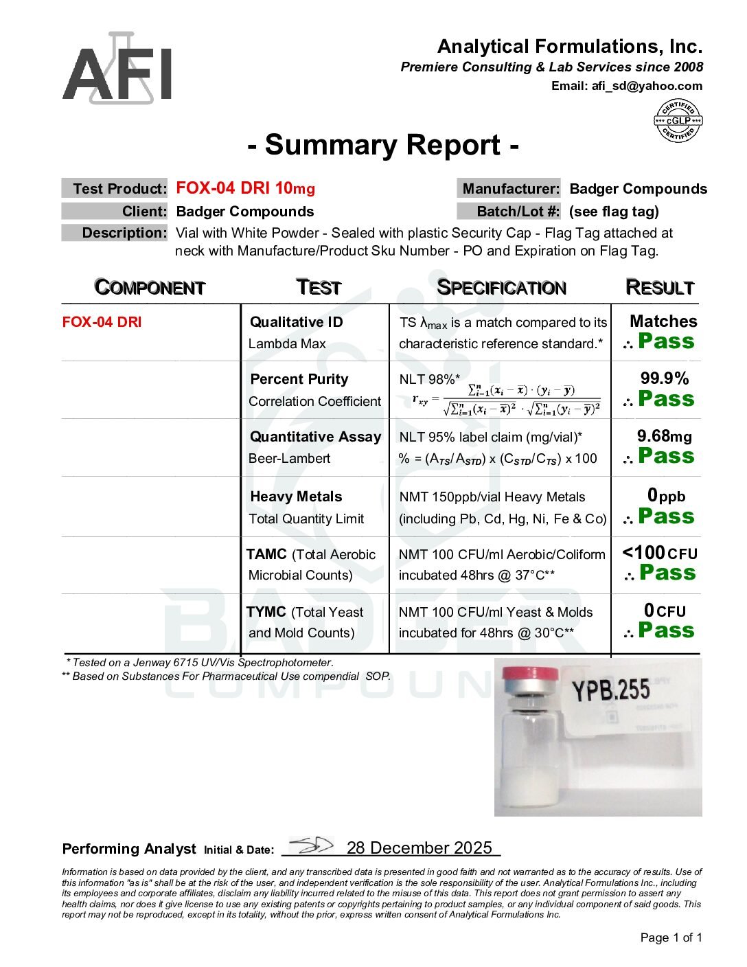 • 10 mg FOX04 with Badger Compounds Logo