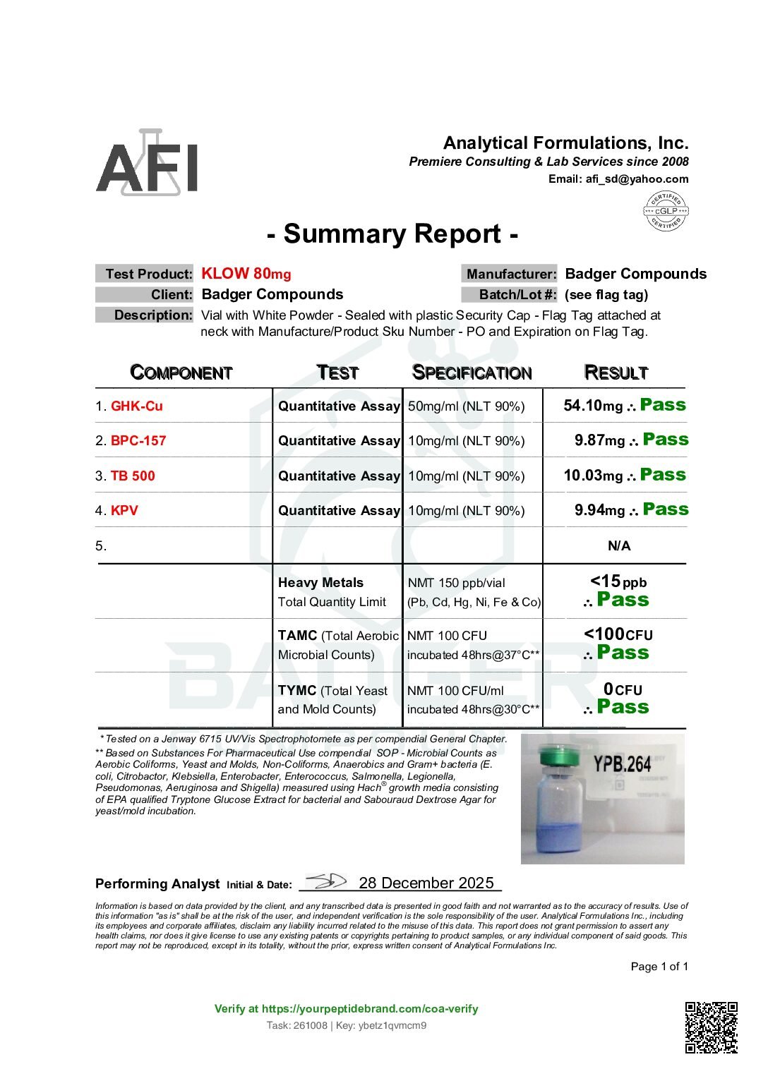 By purchasing from Badger Compounds, the buyer affirms that they are a qualified researcher or institution with the appropriate training, facilities, and authorization to handle, store, use, and dispose of research chemicals in compliance with all applicable federal, state, and local laws and regulations. All sales are final. Badger Compounds assumes no liability for misuse, improper handling, or any consequences arising from the use of this product.