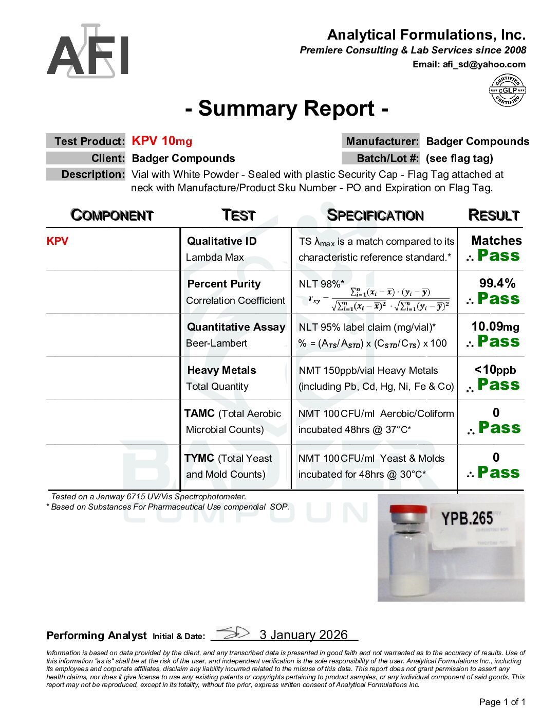 KPV (Lysine-Proline-Valine) - Badger Compounds