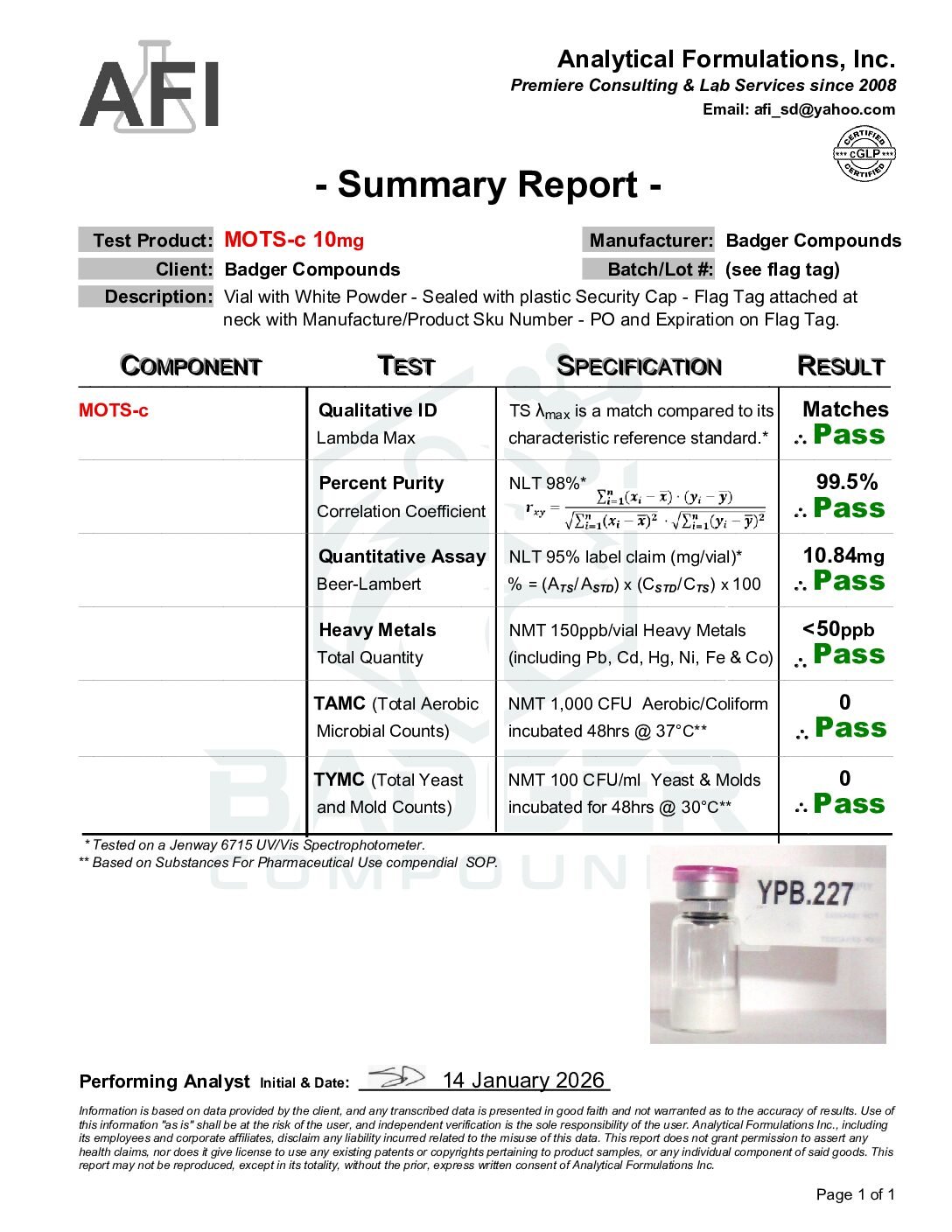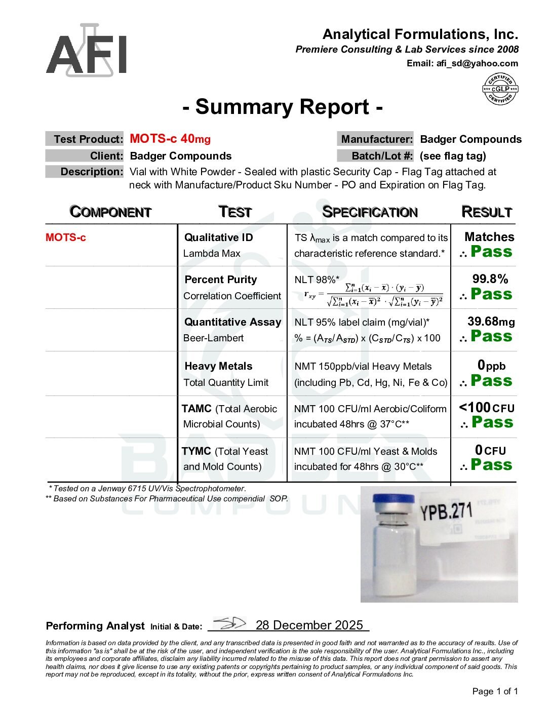 By purchasing from Badger Compounds, the buyer affirms that they are a qualified researcher or institution with the appropriate training, facilities, and authorization to handle, store, use, and dispose of research chemicals in compliance with all applicable federal, state, and local laws and regulations. All sales are final. Badger Compounds assumes no liability for misuse, improper handling, or any consequences arising from the use of this product.