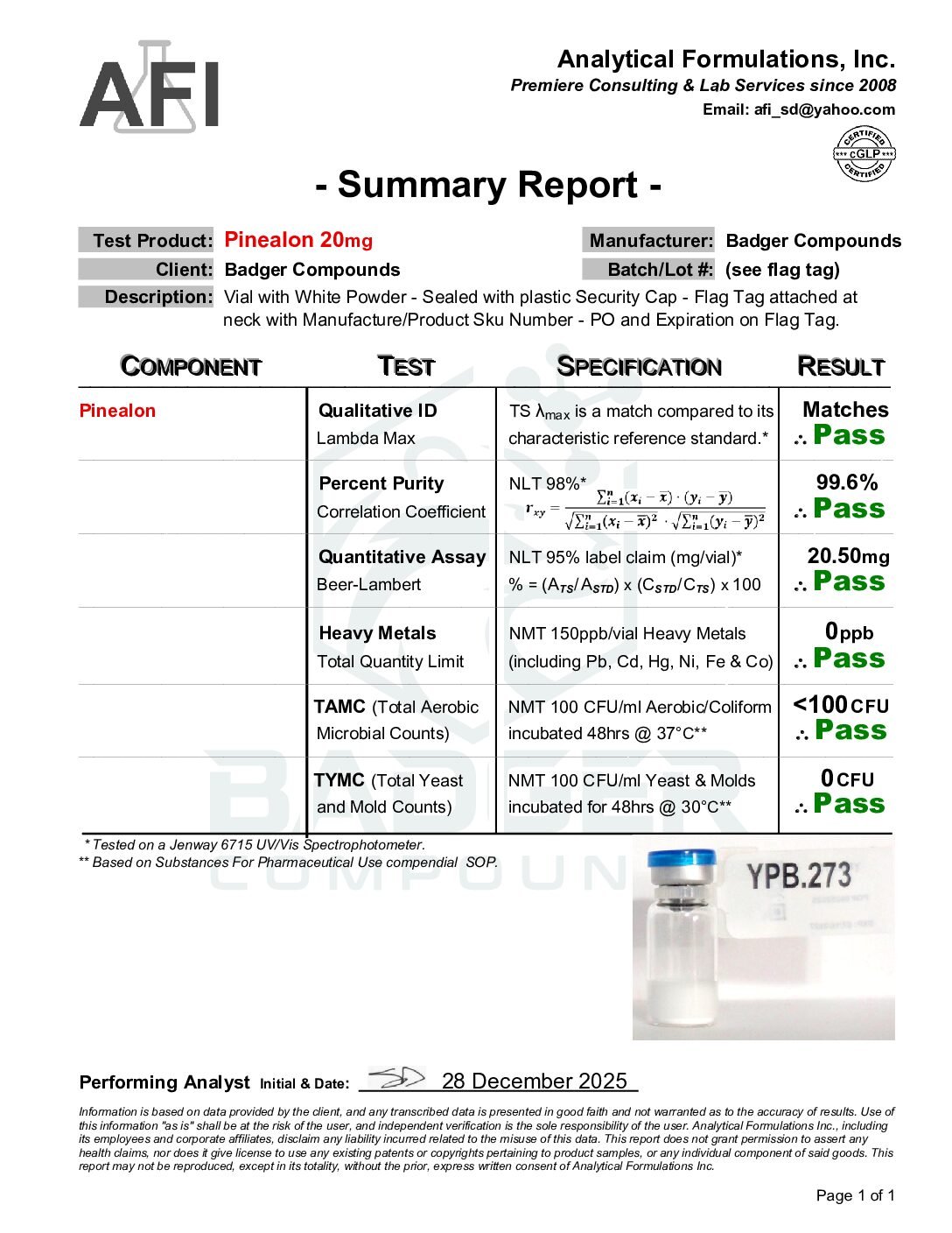 • 20 mg vial Pinealon with Badger Compounds Logo