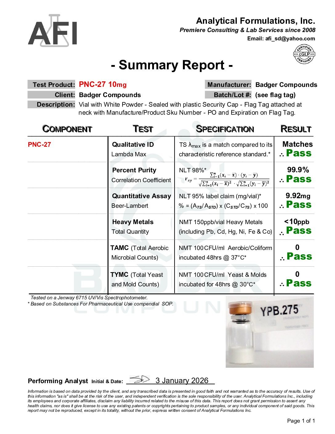 • 10 mg PNC-27 with Badger Compounds Logo