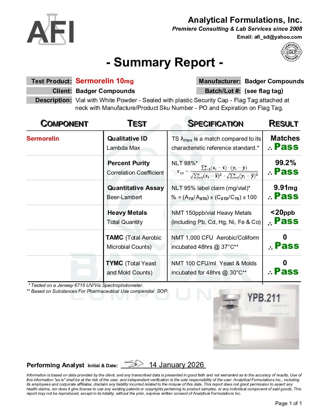 By purchasing from Badger Compounds, the buyer affirms that they are a qualified researcher or institution with the appropriate training, facilities, and authorization to handle, store, use, and dispose of research chemicals in compliance with all applicable federal, state, and local laws and regulations. All sales are final. Badger Compounds assumes no liability for misuse, improper handling, or any consequences arising from the use of this product.