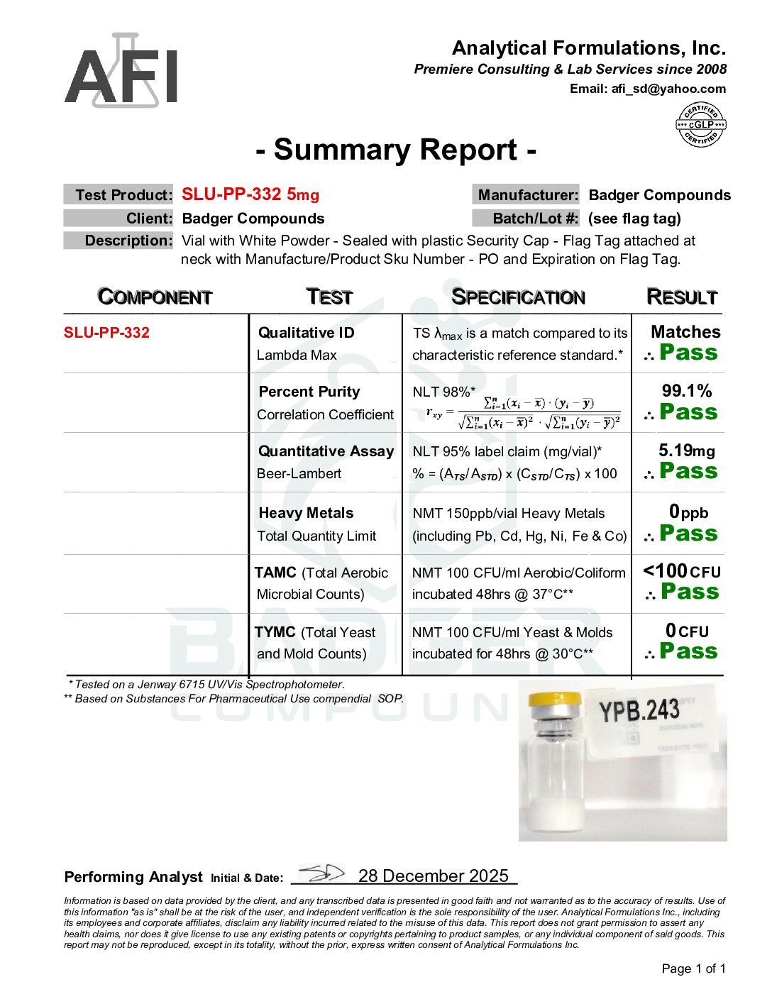 • 5 mg vial SLU-PP-332 with Badger Compounds Logo