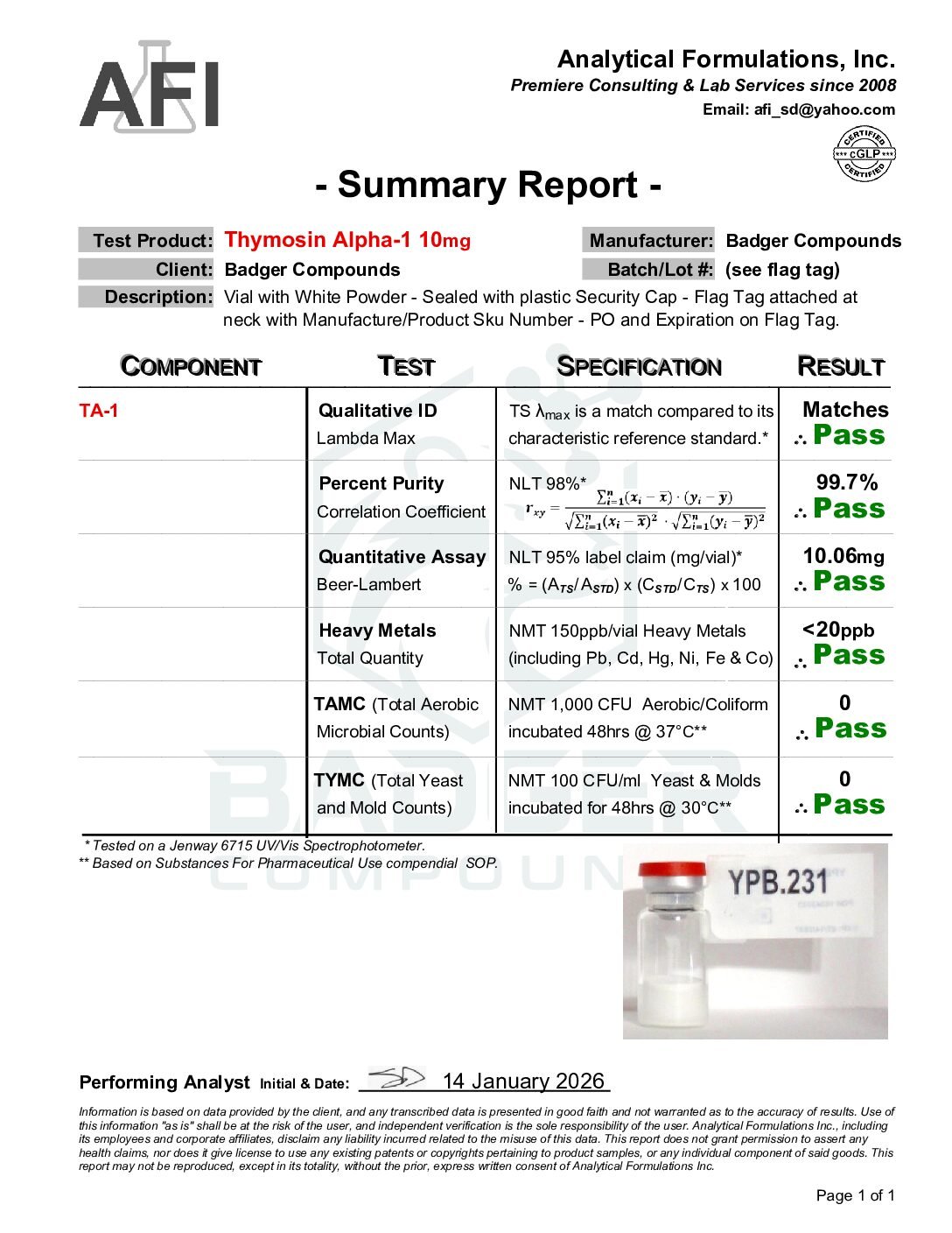 By purchasing from Badger Compounds, the buyer affirms that they are a qualified researcher or institution with the appropriate training, facilities, and authorization to handle, store, use, and dispose of research chemicals in compliance with all applicable federal, state, and local laws and regulations. All sales are final. Badger Compounds assumes no liability for misuse, improper handling, or any consequences arising from the use of this product.
